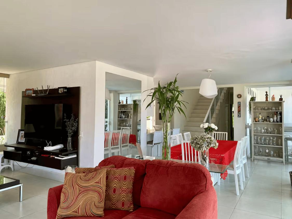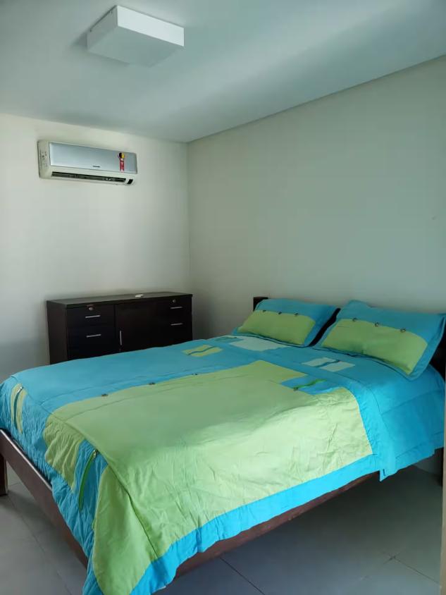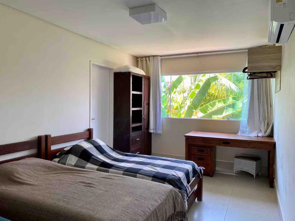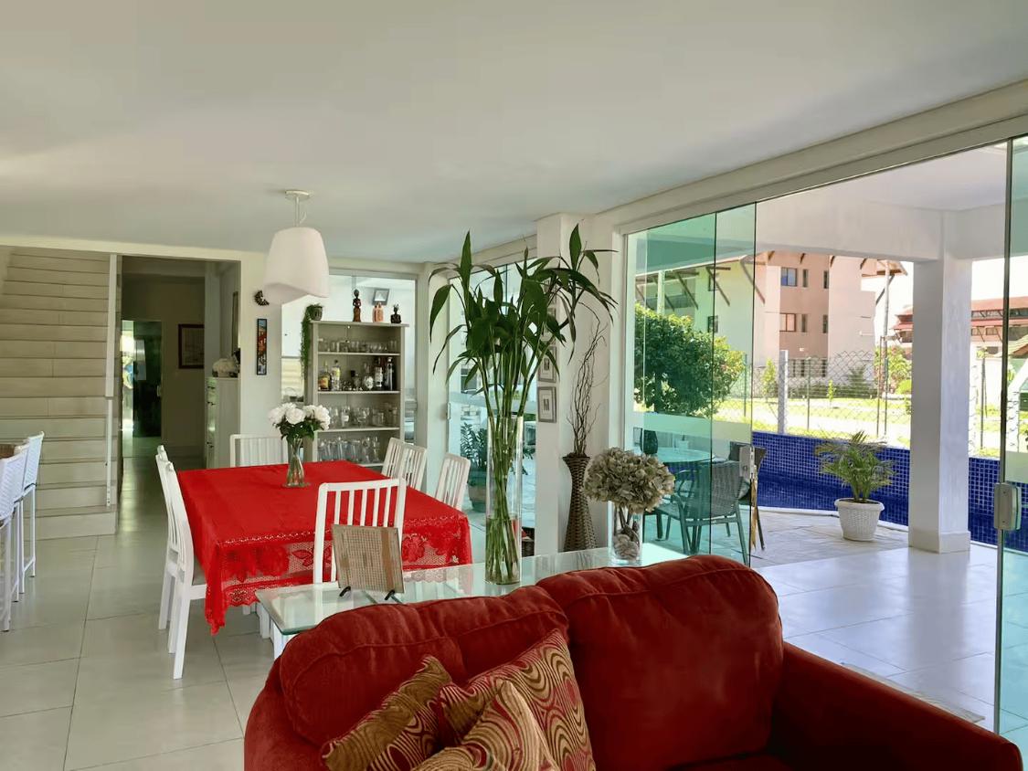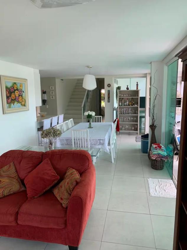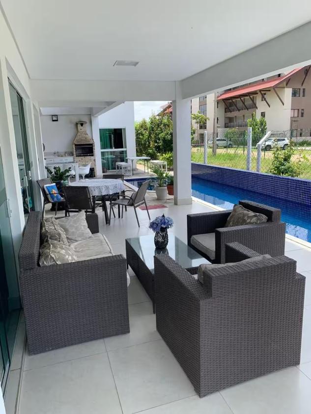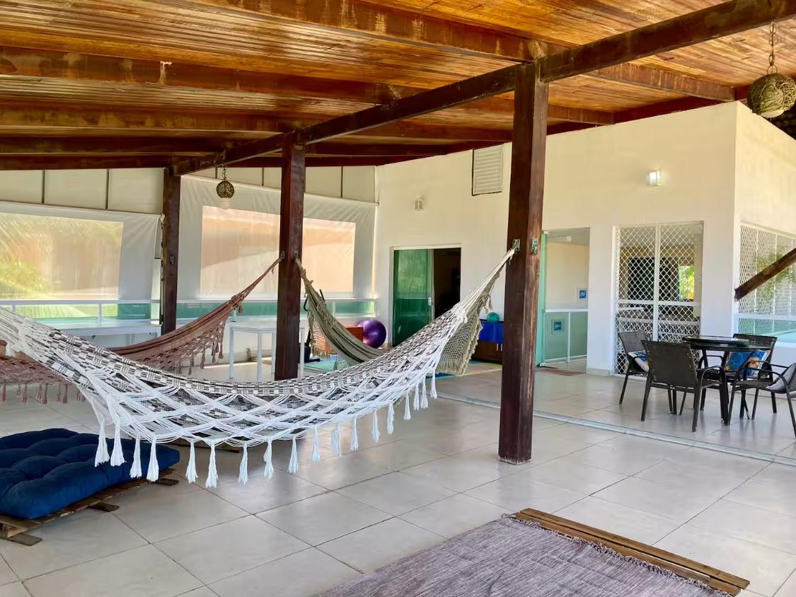 Espaçosa, com ar condicionado em todos os quartos, piscina, churrasqueira, cozinha equipada, amplo espaço para redes e espaço para ginástica. Condomínio dispõe de campo de futebol, quadra de voley de areia e play. Todos os quartos com roupas de cama e banho.