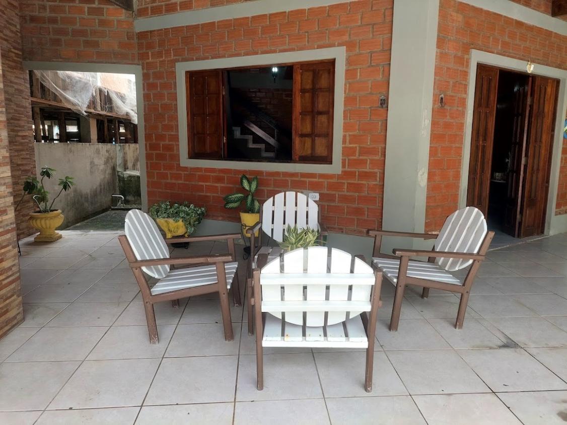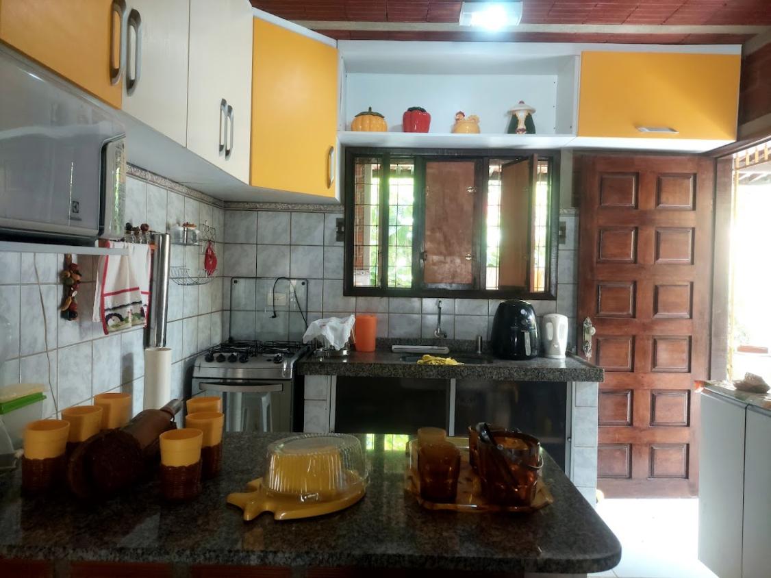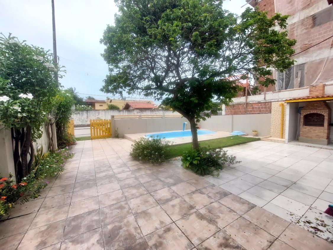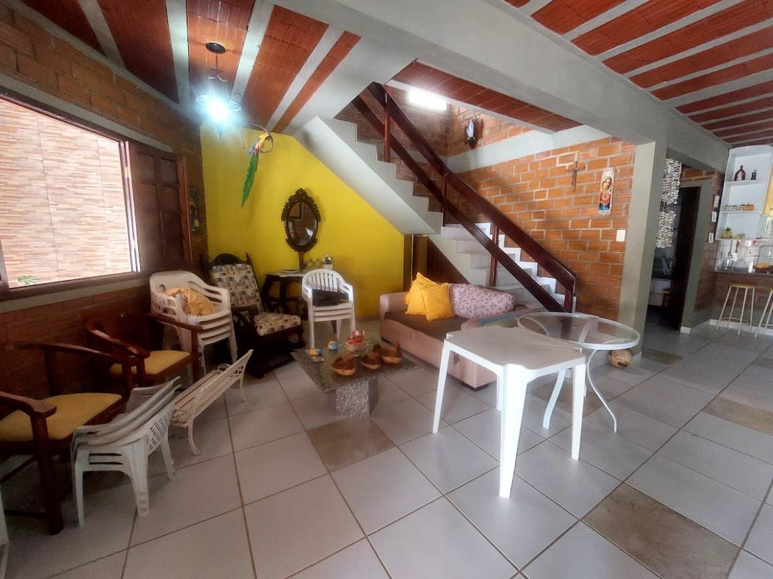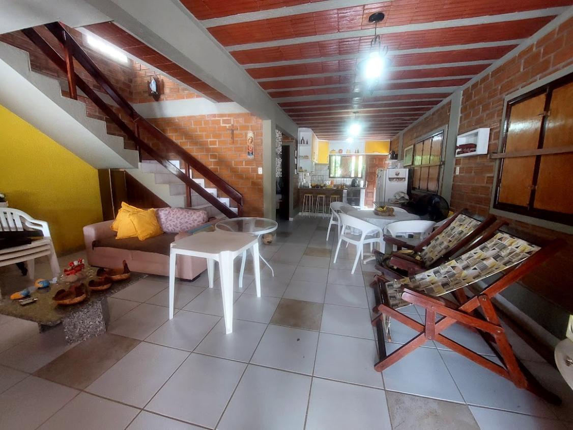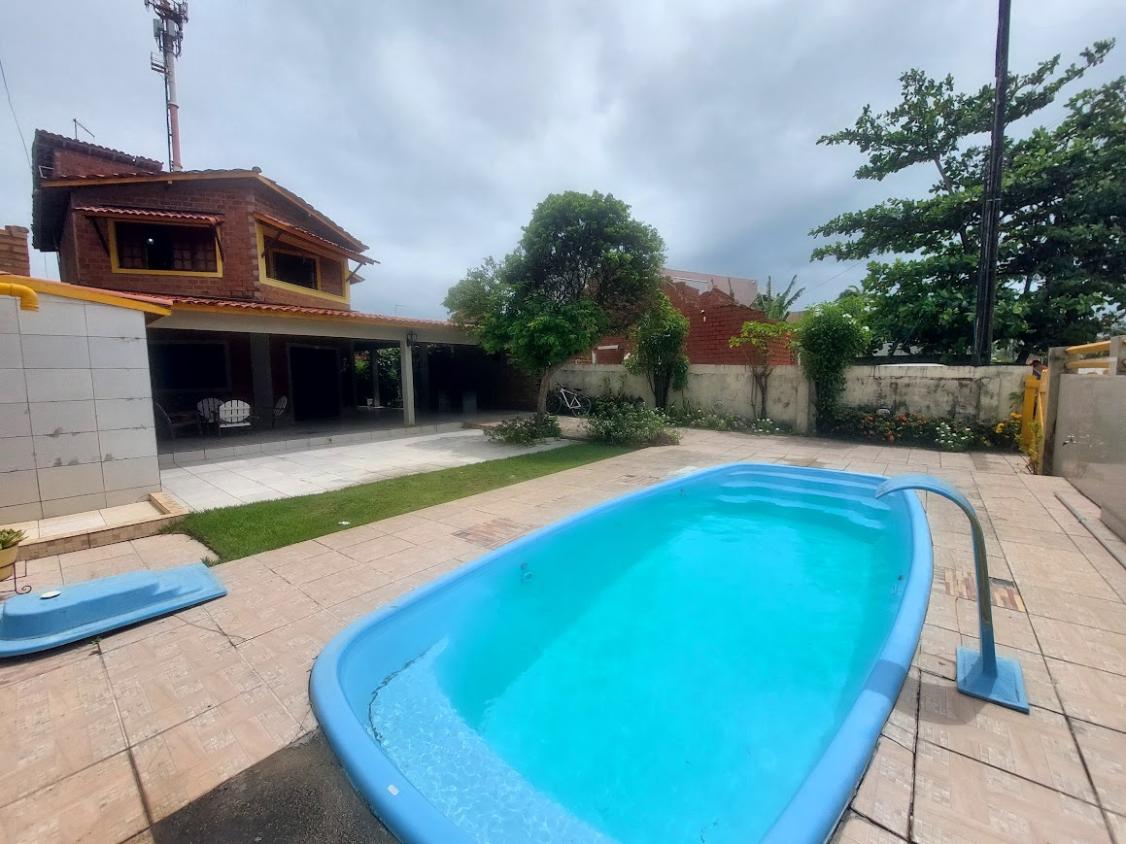 A casa possui 3 quartos, 3 wc, sendo dois dentro de casa e um externo na área da piscina, quintal grande, piscina com chafariz, perto da praia, localizada no cupe, perto do hotel village.