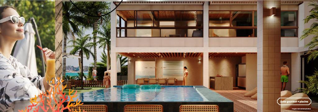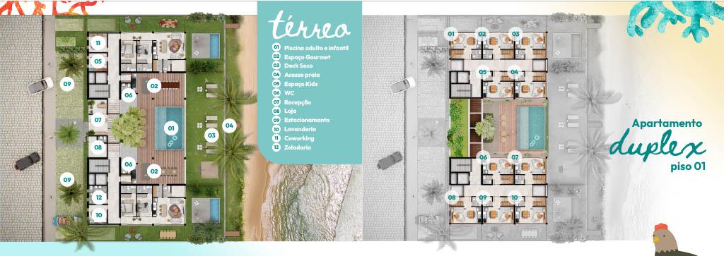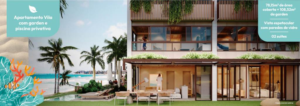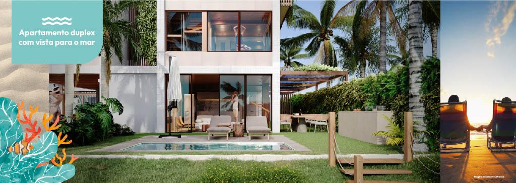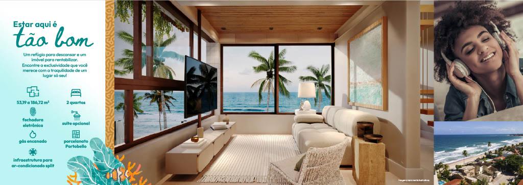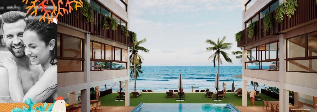 Apartamento 2 quartos, 1 suíte, 54m², beira mar, pé na areia, no merepe, 5 min do centrinho de carro, 1 vaga de garagem.