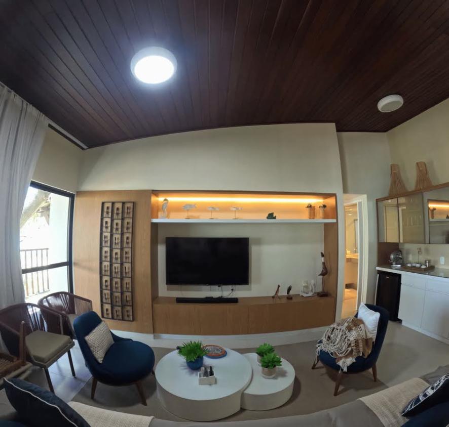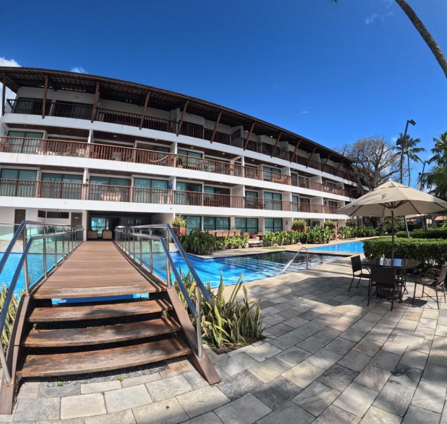 Um Apartamento no 3 andar, com 150m², 4 suítes, 6 wcs, 2 vagas fixas, condomínio grande com campo de futebol, vôlei, 4 piscinas, pé na areia, em frente as piscinas naturais de porto de galinhas