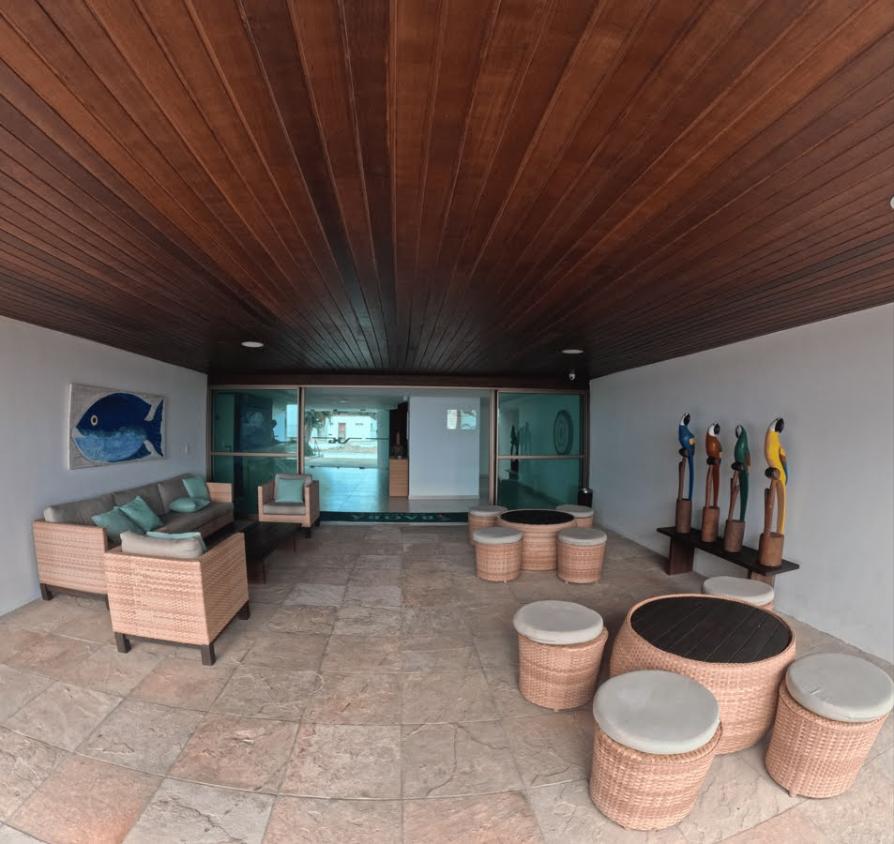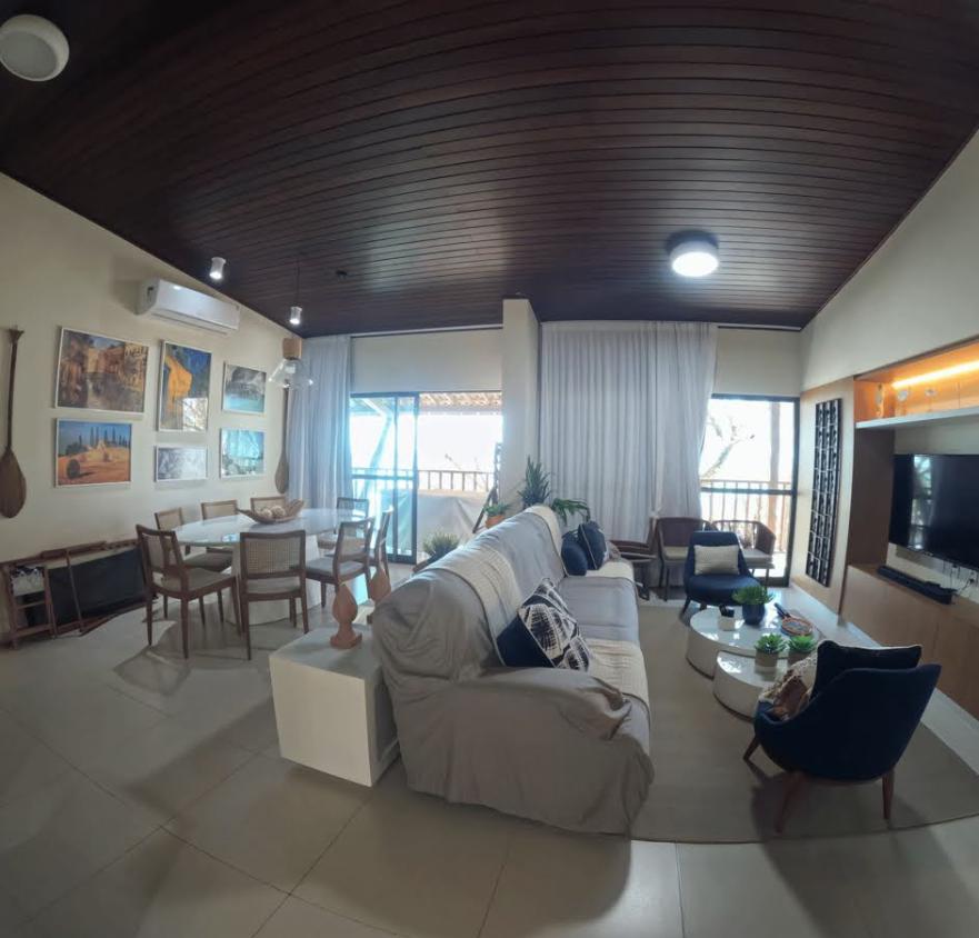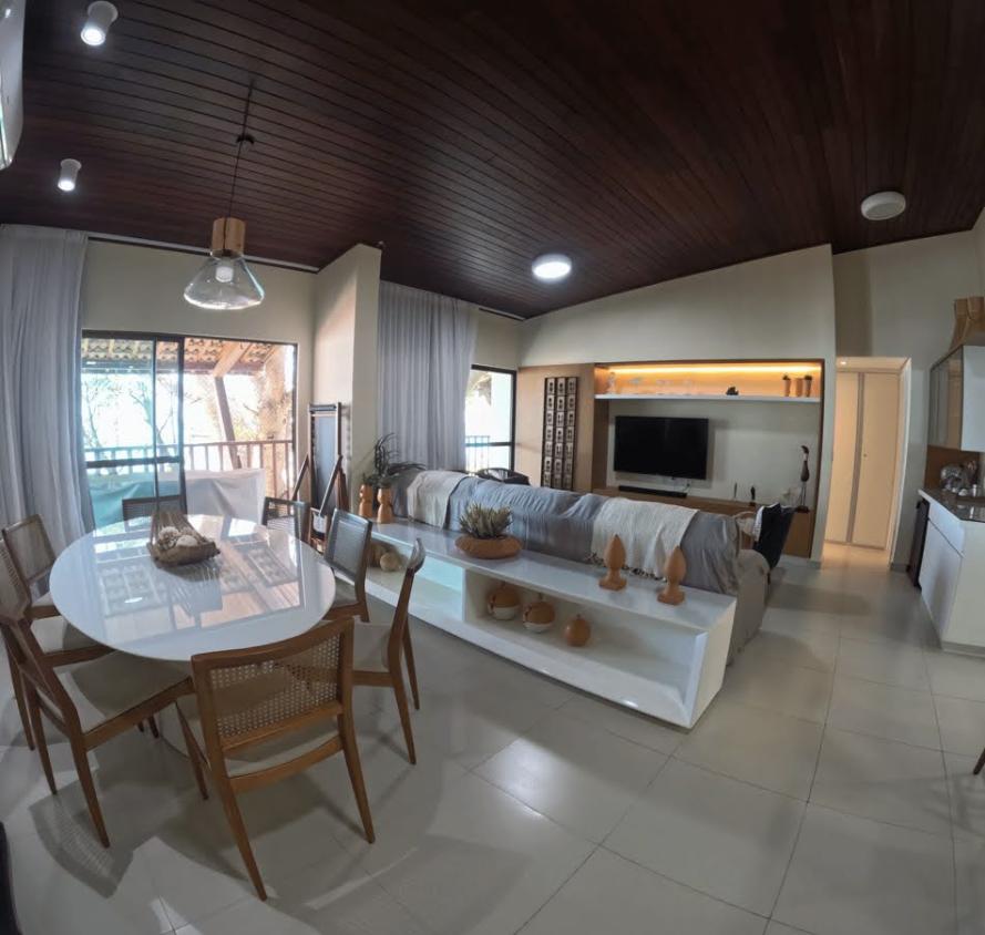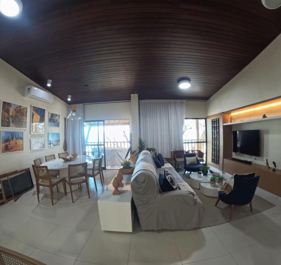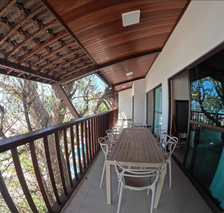 An apartment on the 3rd floor, with 150m², 4 suites, 6 bathrooms, 2 fixed parking spaces, located in a large condominium with a soccer field, volleyball court, 4 swimming pools, beachfront, right in front of the natural pools of Porto de Galinhas.
