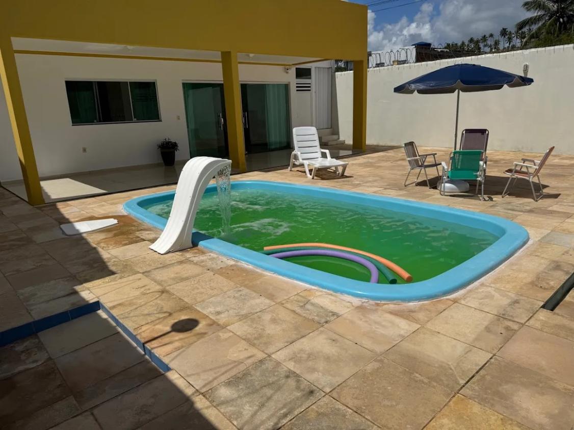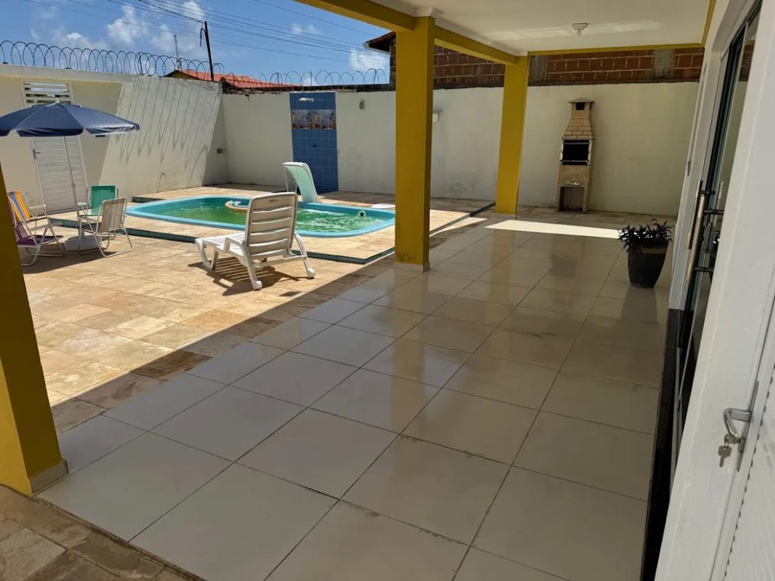 3 quartos, piscina, espaço pra 3 carros, lote com 15x30 = 450m², casa com 150m² de área construída.
